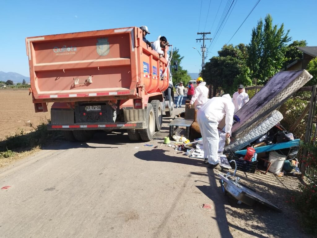 En el lugar se encuentran trabajando en el despeje, y ayuda a los afectados dos cuadrillas de emergencia de MuniQuillota a cargo de nuestra oficina, personal de GRD, además de maquinaria pesada y una tolva para las labores de retiro de escombros en el sitio.