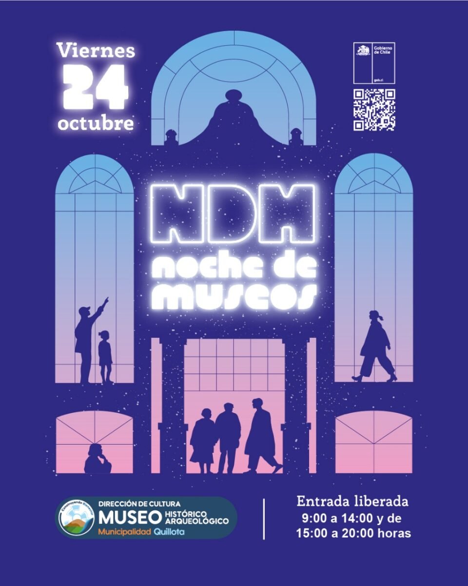 Hoy viernes 24 de octubre se celebrará la Noche de Museos, en el MHAQ, una iniciativa del Ministerio de las Culturas, las Artes y el Patrimonio que invita a recorrer gratuitamente museos y espacios culturales de todo Chile en horario extendido, de 9:00 a 14:00 y de 15:00 a 20:00 hrs.