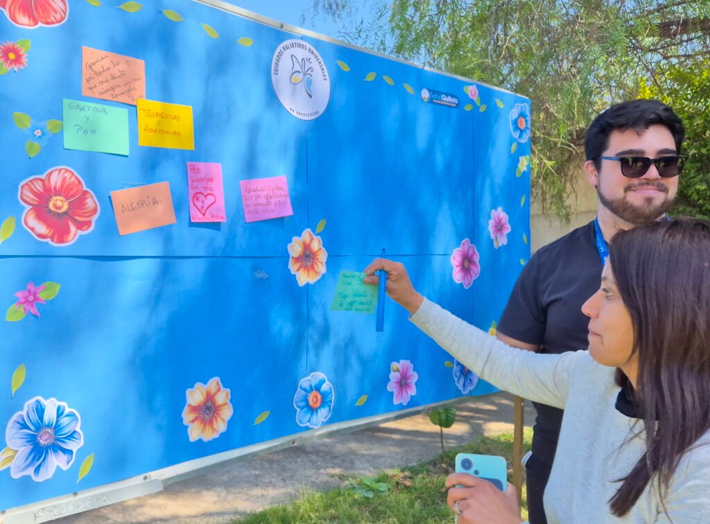 “Esta actividad fue una oportunidad para reunirnos con las familias, compartir experiencias y reflexionar sobre el proceso final de vida. Escuchamos testimonios muy emotivos sobre el acompañamiento y el duelo, y quisimos cerrar con un mural que reflejara ese amor y aprendizaje compartido”, manifestó Camila Encina.